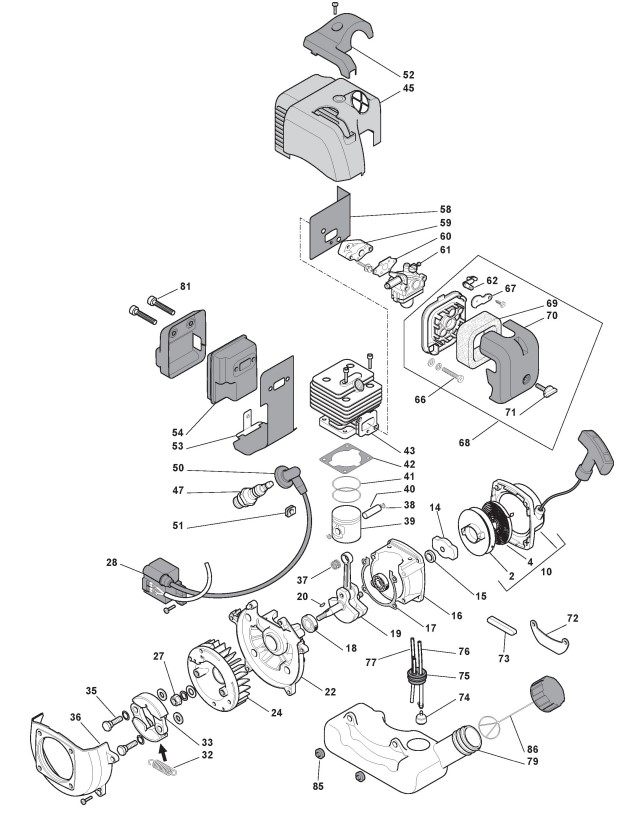 Zeichnungen von Alpina Rasentrimmer/Freischneider TB 26 mit Geräte Nr. 280720000/10 ab Baujahr 2012