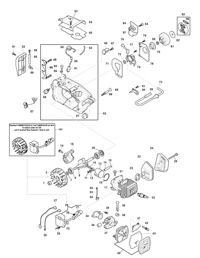 Zeichnungen von Alpina Kettensägen A 2500 mit Geräte Nr. 228010020/15 ab Baujahr 2019