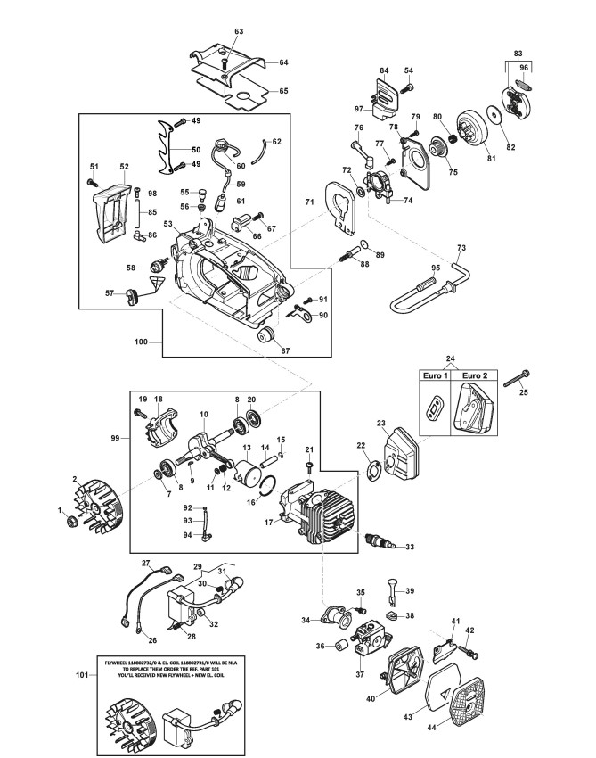 Zeichnungen von Alpina Kettensägen A 305 C mit Geräte Nr. 202510120/ALP ab Baujahr 2015