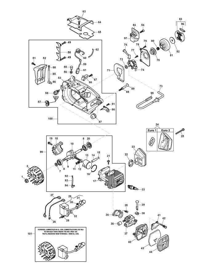 Zeichnungen von Alpina Kettensägen A 305 C mit Geräte Nr. 202510120/ALP ab Baujahr 2019