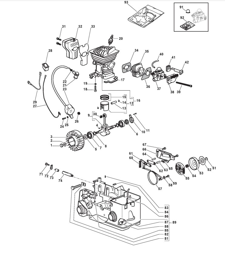Zeichnungen von Alpina Kettensägen A 375 mit Geräte Nr. 223516050/10 ab Baujahr 2010
