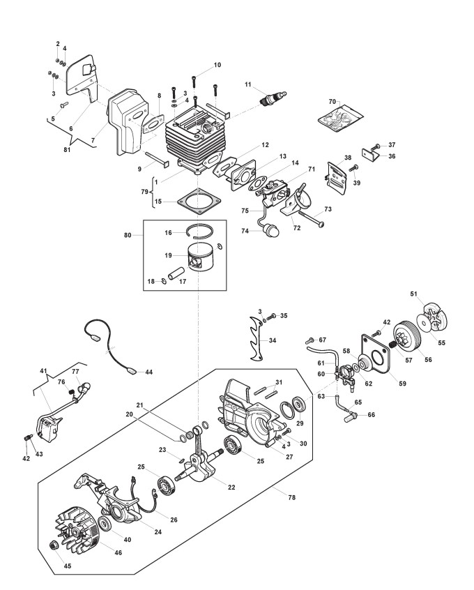 Zeichnungen von Alpina Kettensägen A 4000 mit Geräte Nr. 228216000/10 ab Baujahr 2021