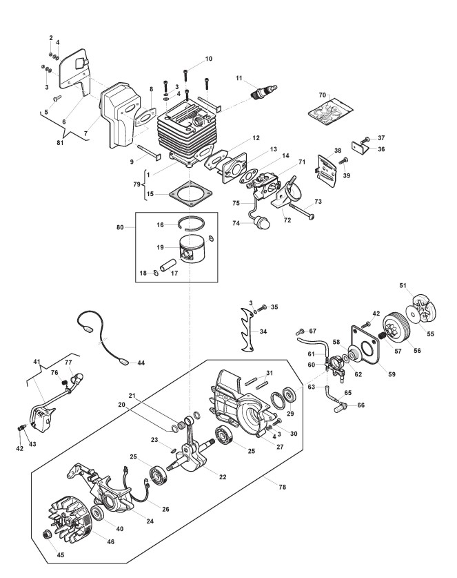 Zeichnungen von Alpina Kettensägen ACS 41 T mit Geräte Nr. 204016104/A20 ab Baujahr 2020