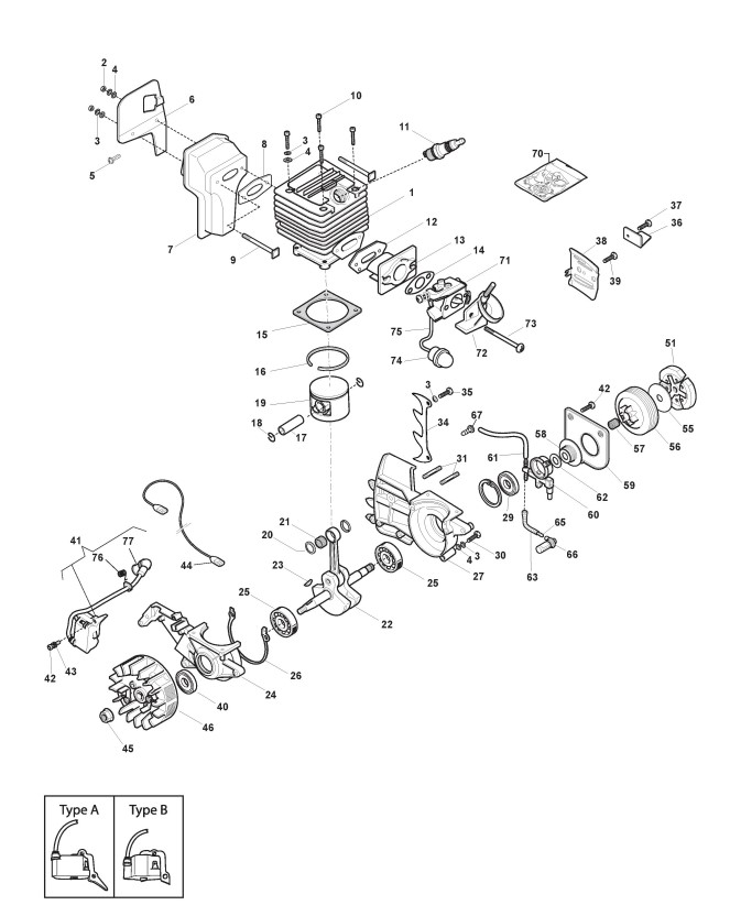 Zeichnungen von Alpina Kettensägen C 38 mit Geräte Nr. 203714000/11 ab Baujahr 2014