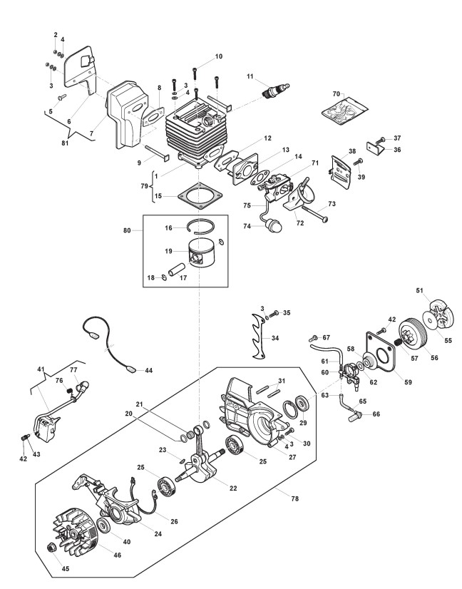Zeichnungen von Alpina Kettensägen C 38 mit Geräte Nr. 203716000/11 ab Baujahr 2018