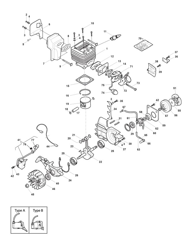 Zeichnungen von Alpina Kettensägen C 41 mit Geräte Nr. 204016000/11 ab Baujahr 2015