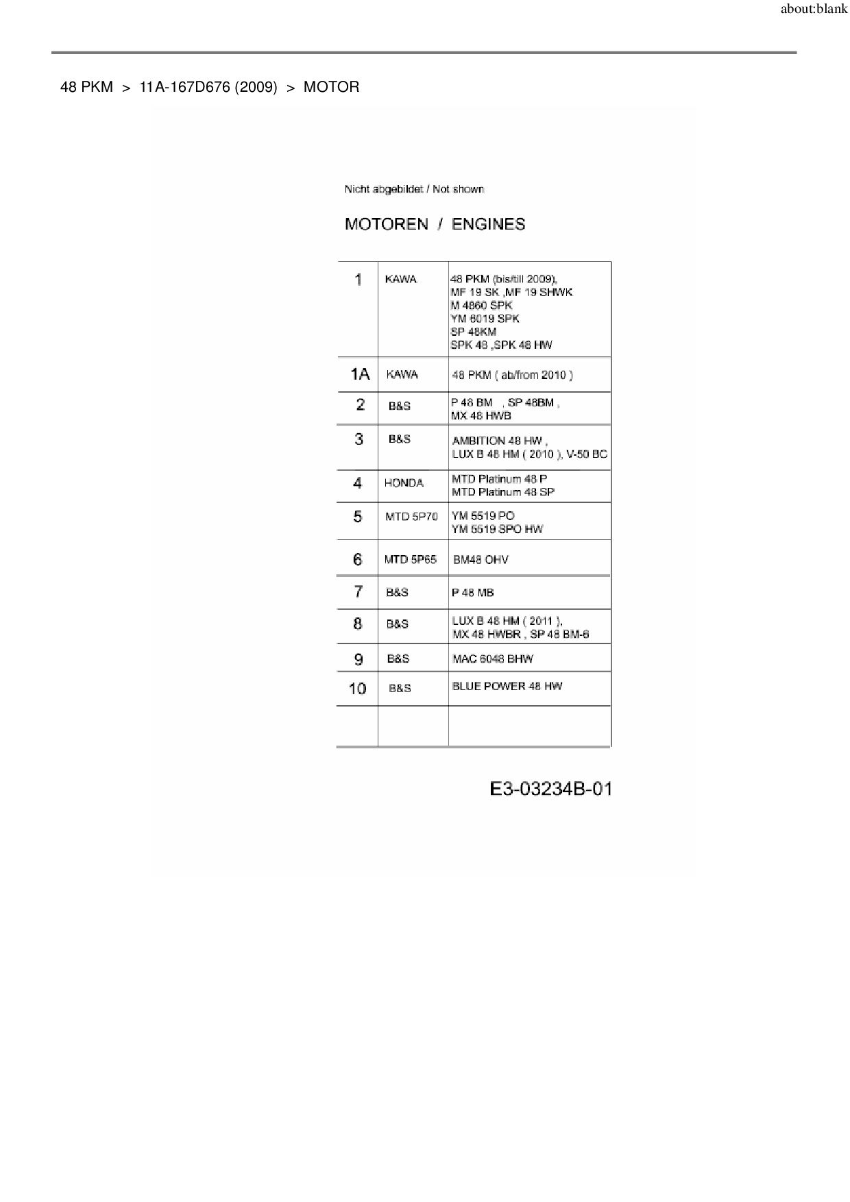Ersatzteile für Motormäher MTD 48 PKM aus der Zeichnung Motor: