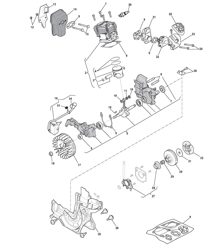 Hier finden Sie alle Ersatzteile von Castelgarden Benzin Kettensägen A 3535 (202014010/08) ab 2008 aus der Zeichnung Motor:
