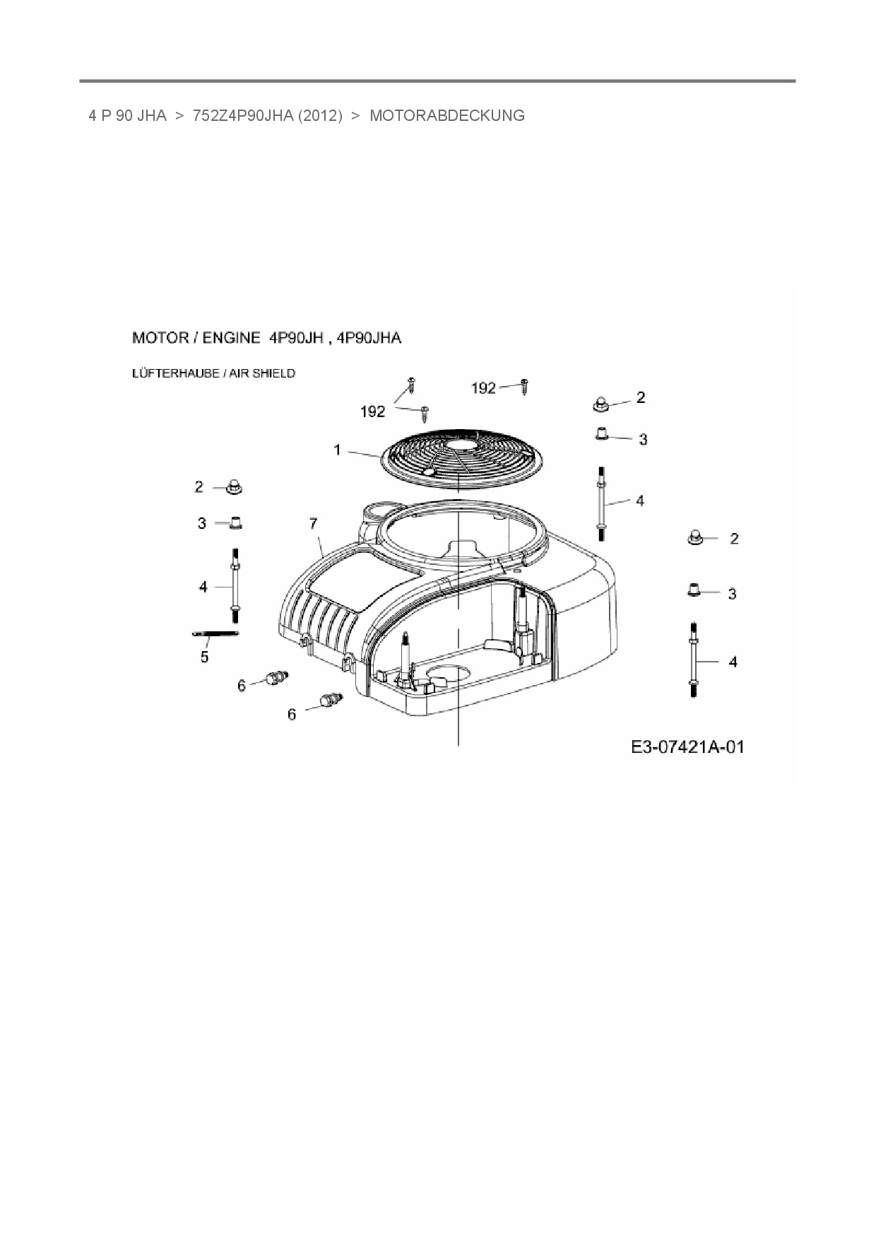 Ersatzteile für Vertikal MTD-Motoren 4 P 90 JHA aus der Zeichnung Motorabdeckung: