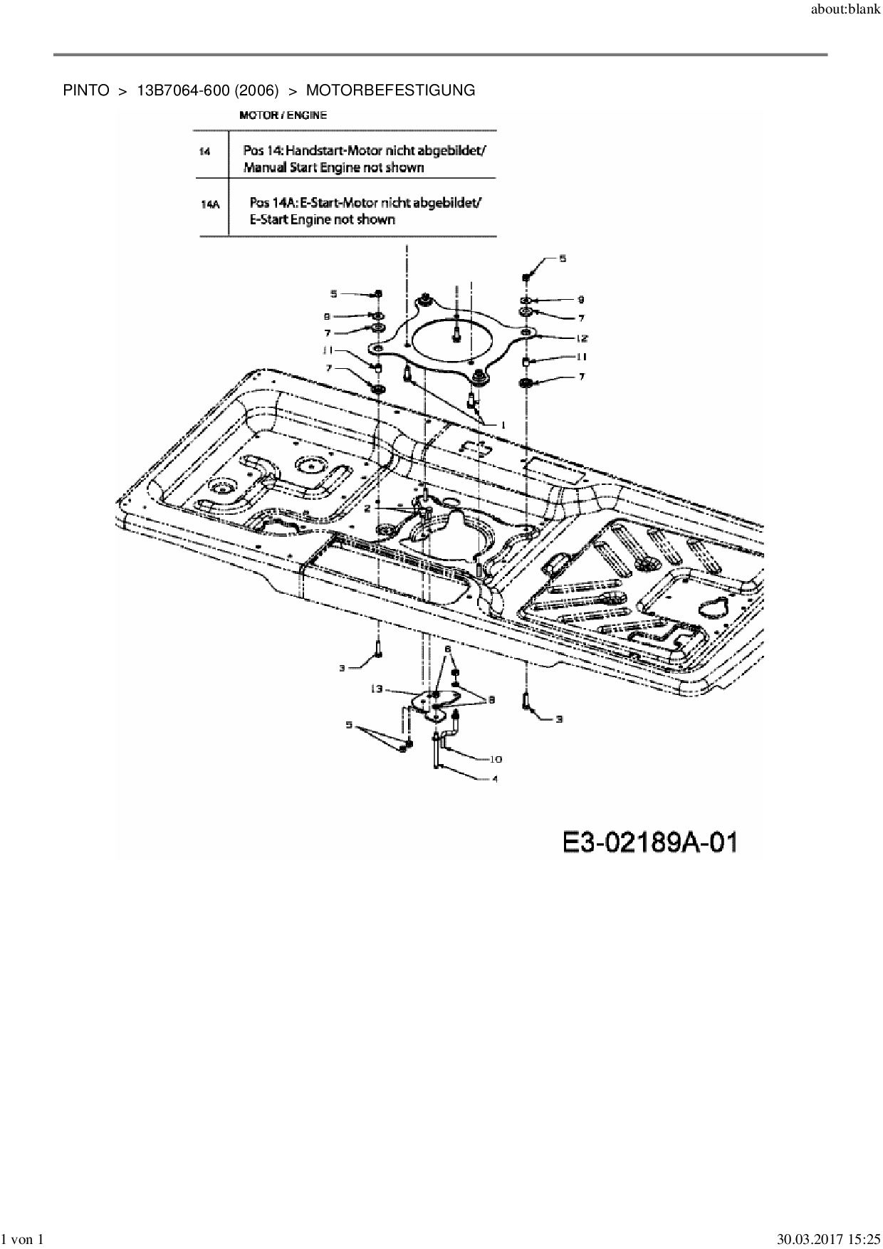Ersatzteile für Rasentraktor MTD Pinto aus der Zeichnung Motorbefestigung: