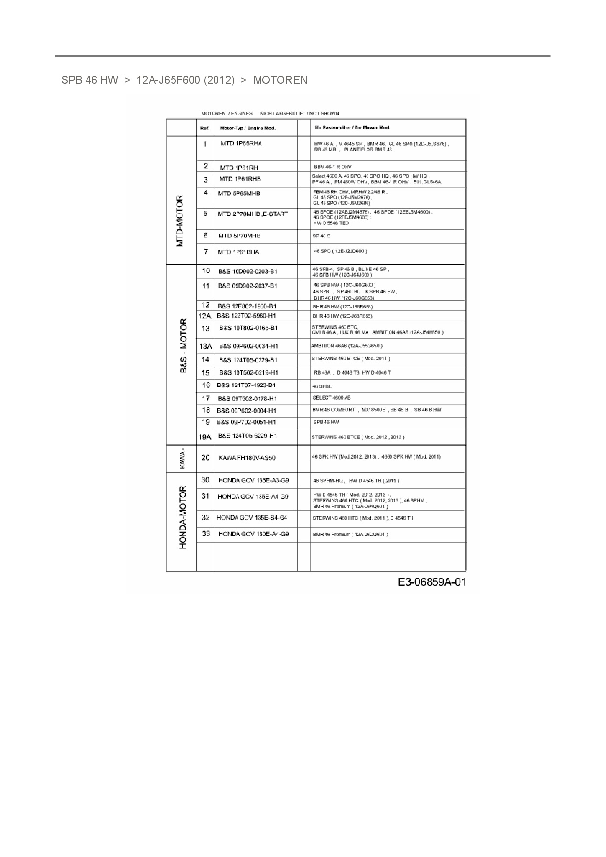 Ersatzteile für Motormäher mit Antrieb MTD SPB 46 HW aus der Zeichnung Motoren (2):