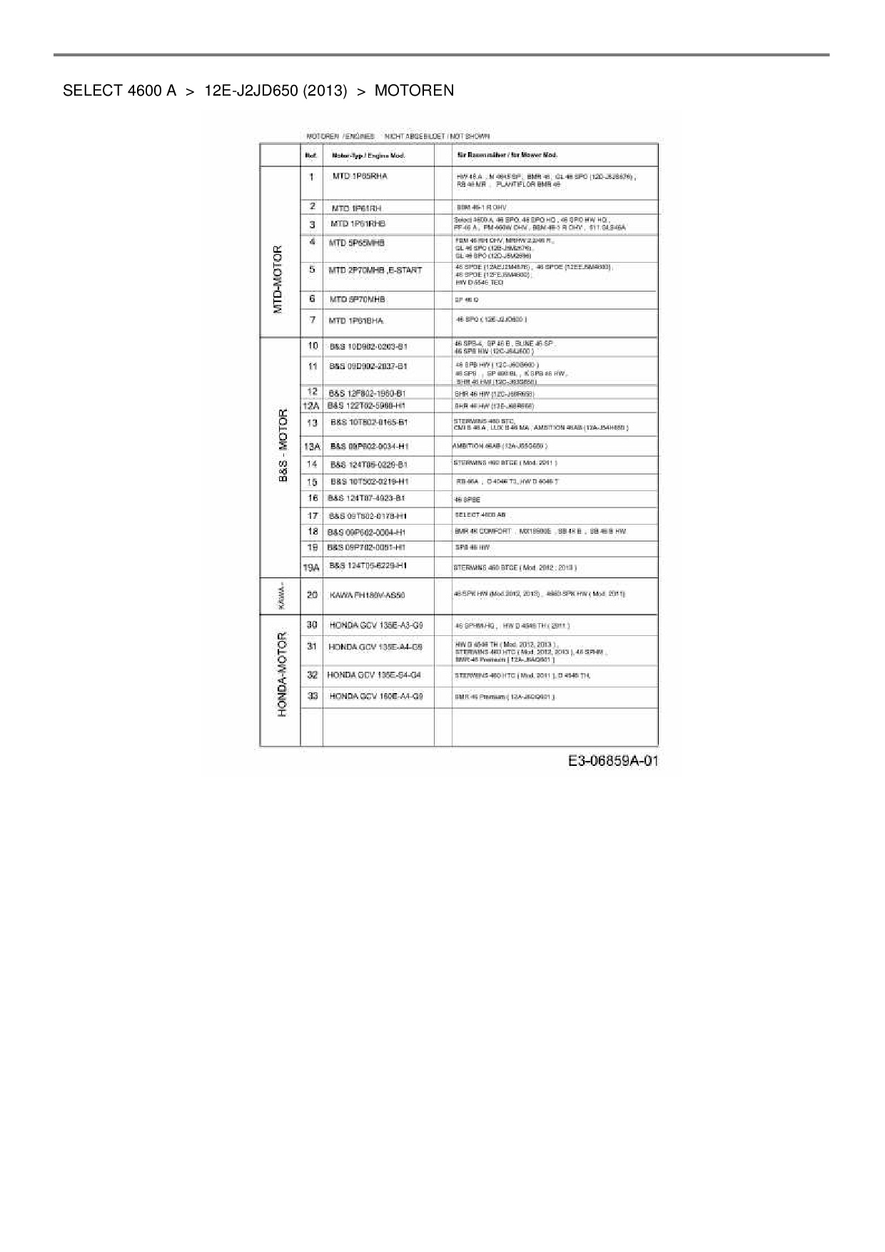 Ersatzteile für Motormäher mit Antrieb Wolf-Garten Select 4600 A aus der Zeichnung Motoren: