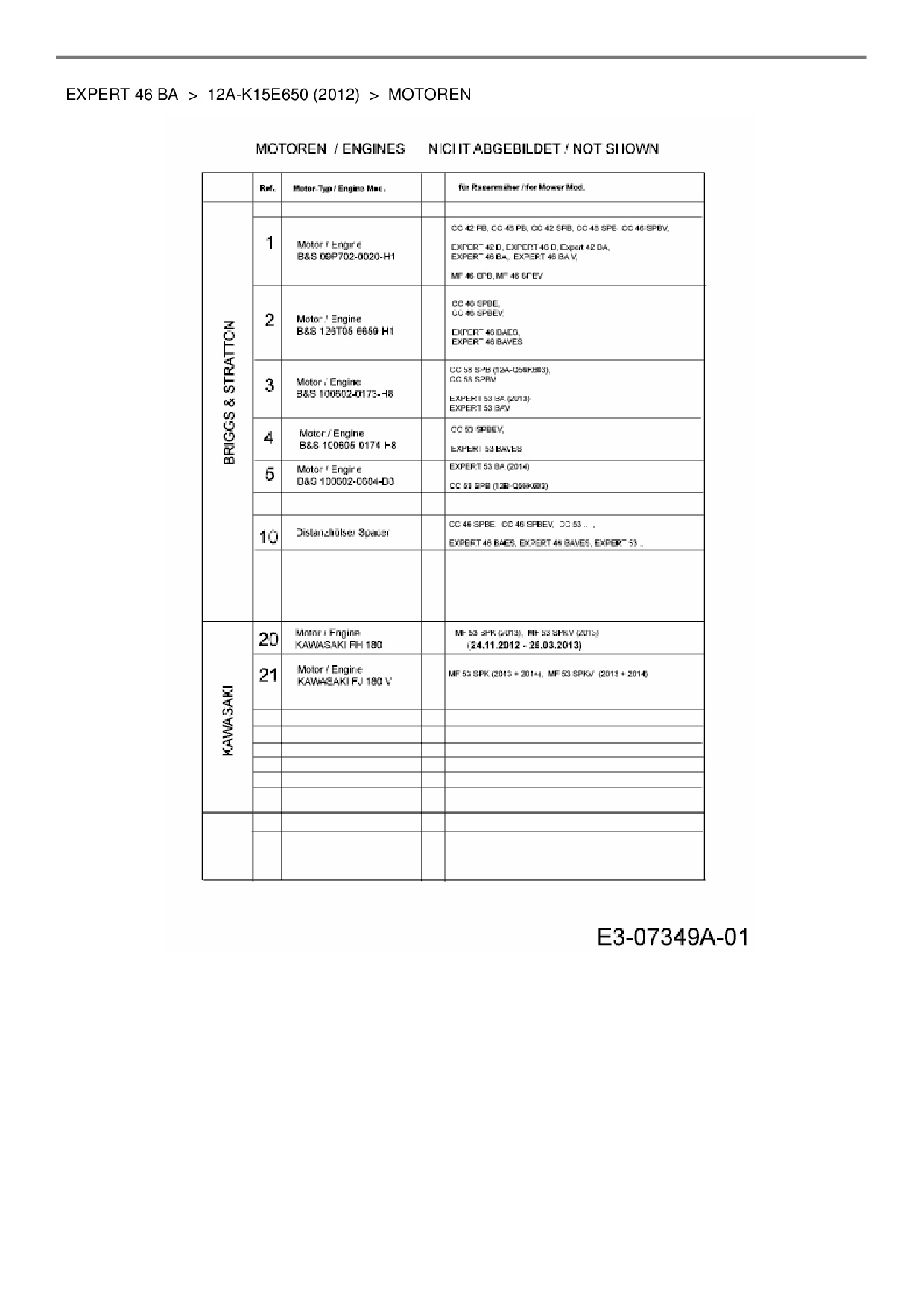 Ersatzteile für Motormäher mit Antrieb Wolf-Garten Expert Expert 46 BA aus der Zeichnung Motoren: