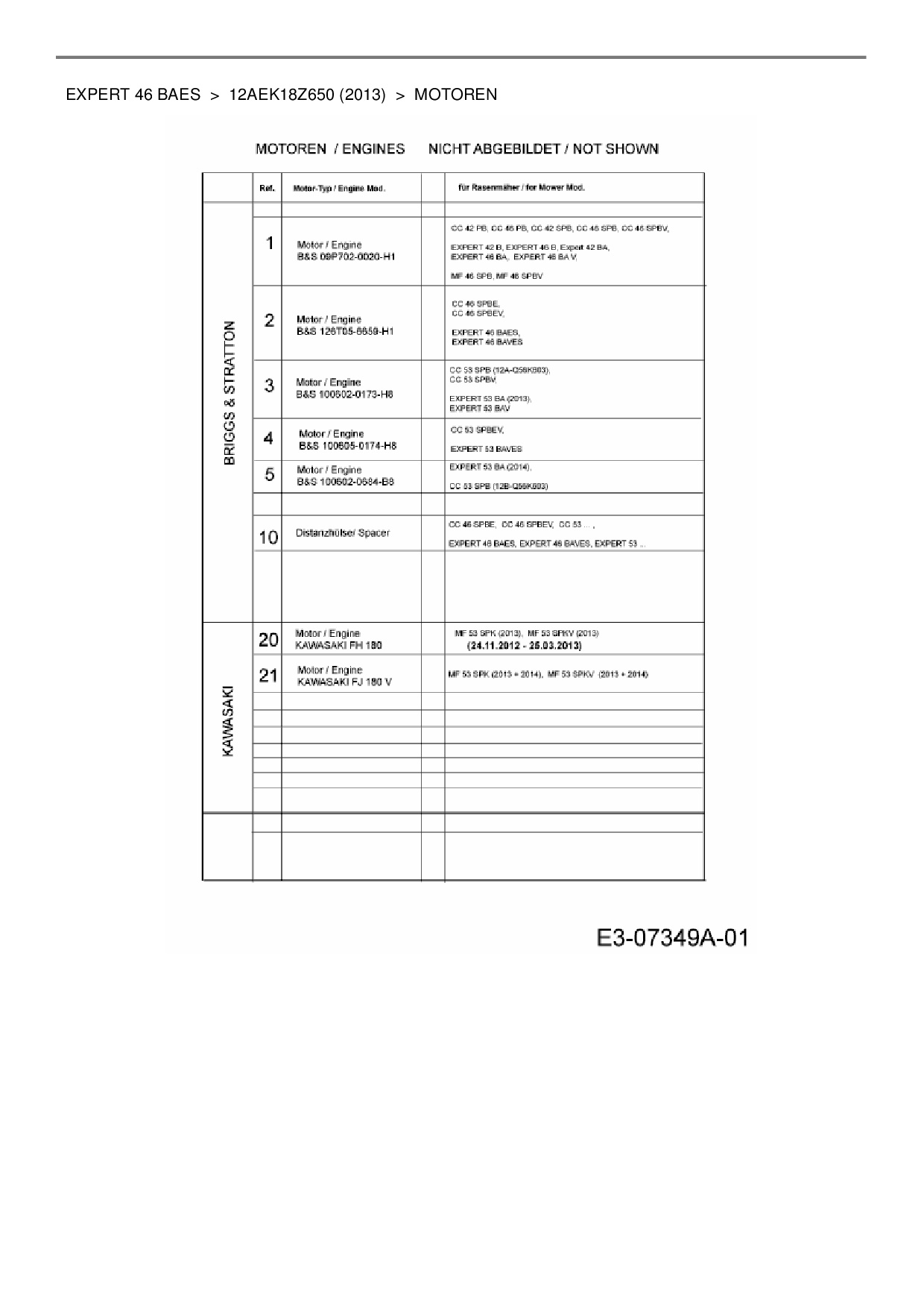 Ersatzteile für Motormäher mit Antrieb Wolf-Garten Expert Expert 46 BAES aus der Zeichnung Motoren: