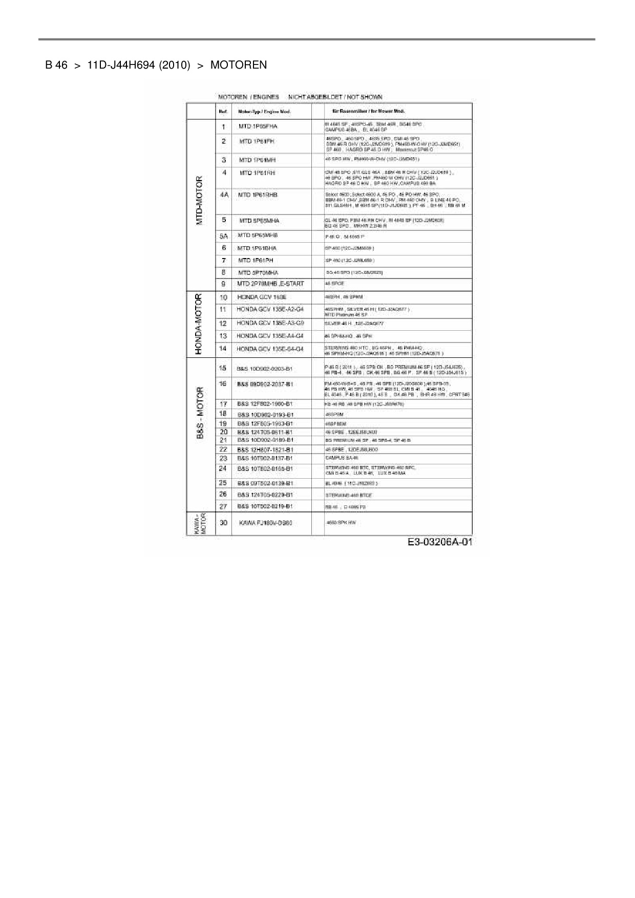 Zeichnung für Lux Tools Motormäher B 46 mit der Geräte-Artikelnr. 11D-J44H694 ab Baujahr 2010: