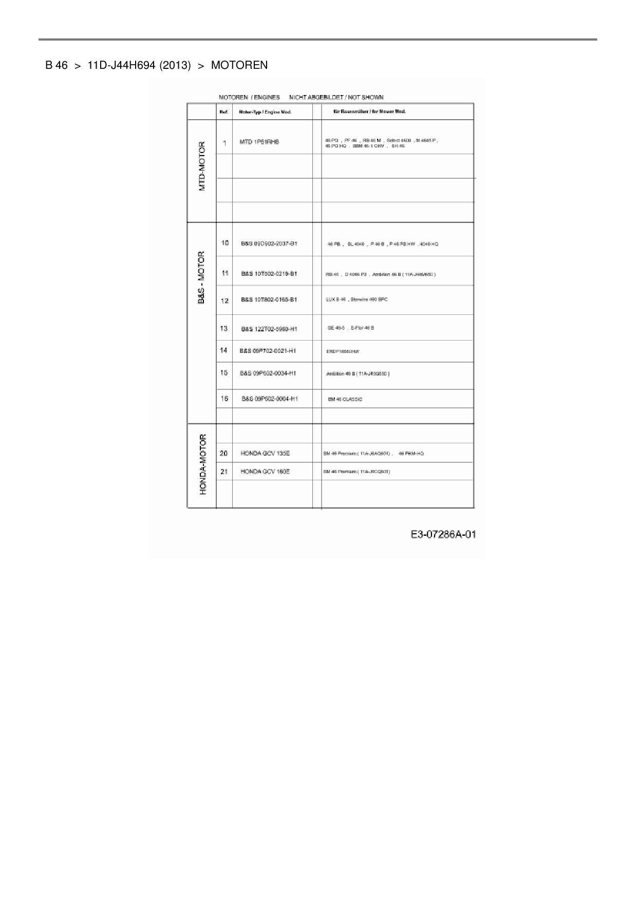 Zeichnung für Lux Tools Motormäher B 46 mit der Geräte-Artikelnr. 11D-J44H694 ab Baujahr 2013: