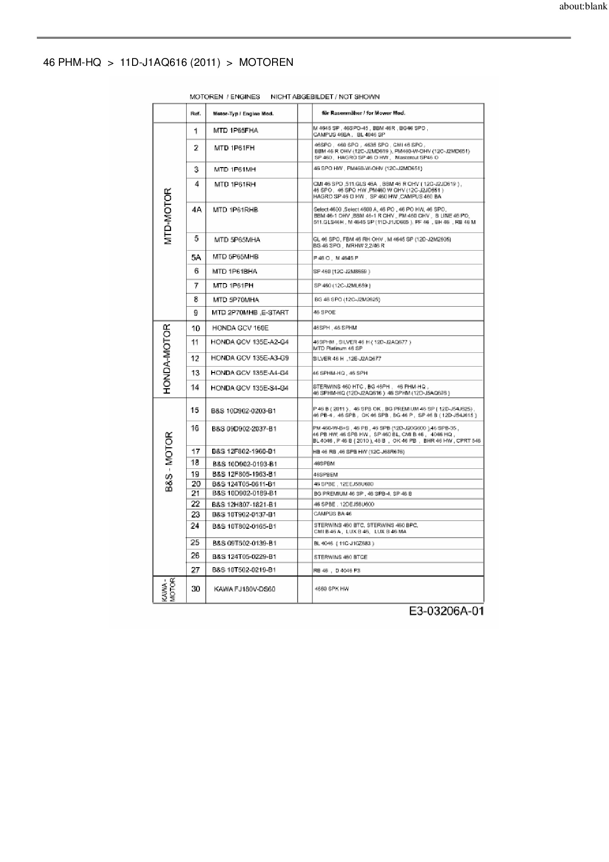 Ersatzteile für Motormäher MTD 46 PHM-HQ aus der Zeichnung Motoren: