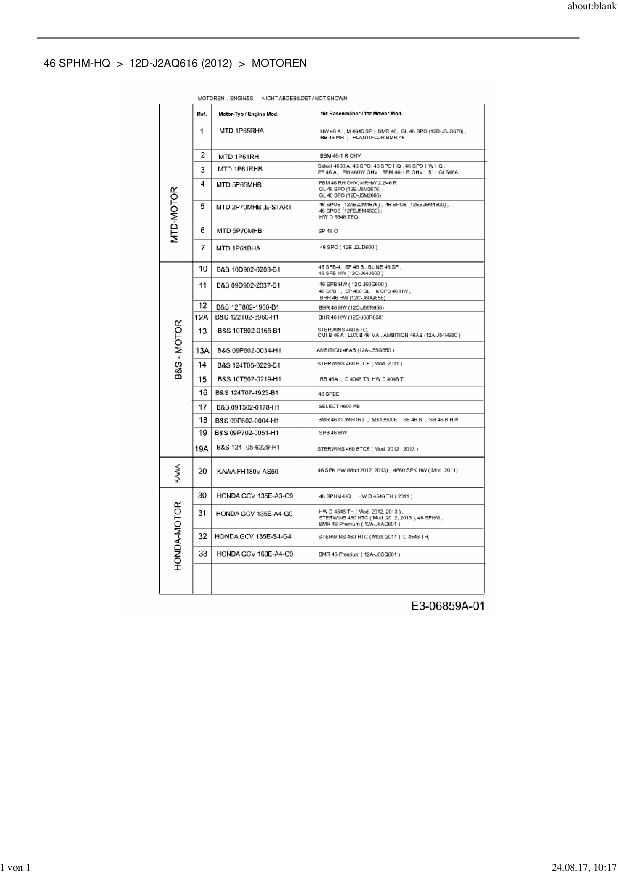 Ersatzteile für Motormäher mit Antrieb MTD 46 SPHM-HQ aus der Zeichnung Motoren: