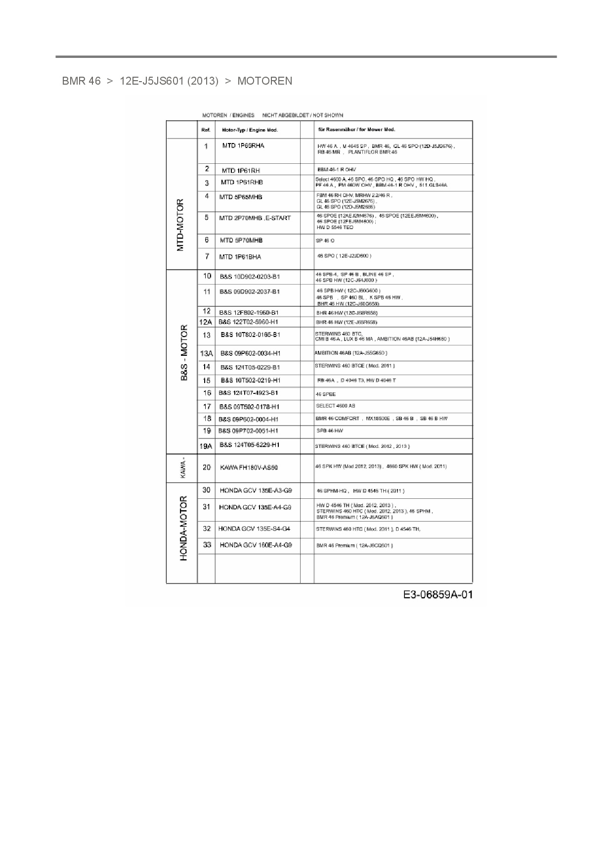 Ersatzteile für Motormäher mit Antrieb Plantiflor BMR 46 aus der Zeichnung Motoren: