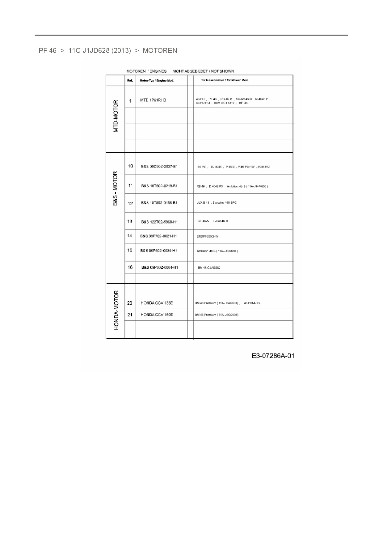 Ersatzteile für Motormäher Preisfuxx PF 46 aus der Zeichnung Motoren: