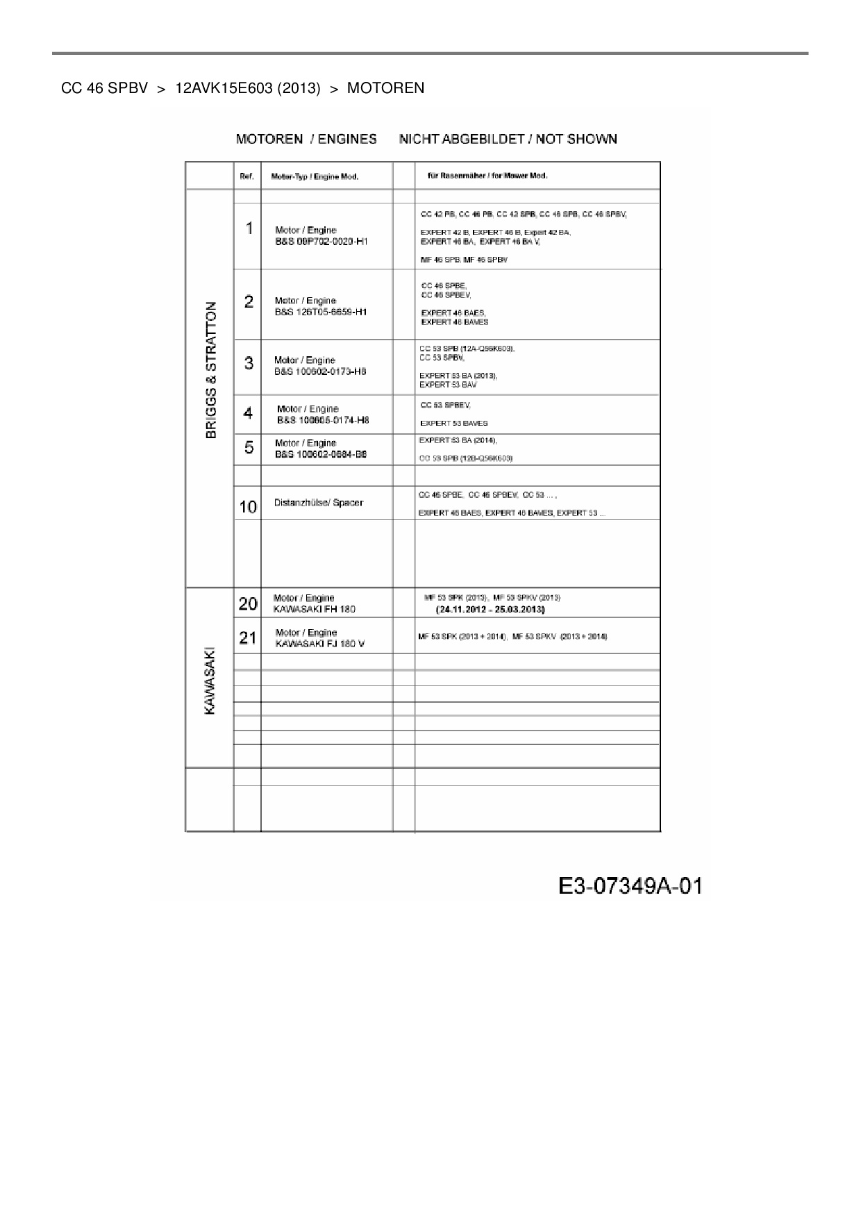 Ersatzteile für Motormäher mit Antrieb Cub Cadet CC 46 SPBV aus der Zeichnung Motoren: