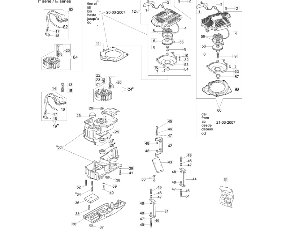 Hier finden Sie alle Ersatzteile für Oleo-Mac Erdbohrgeräte MTL 85 R aus der Zeichnung für Motorgehäuse und Starter: