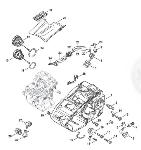 Hier finden Sie alle Ersatzteile von Stihl Benzin-Motorsägen MS 150 TC-E der Zeichnungsgruppe Motorgehäuse: