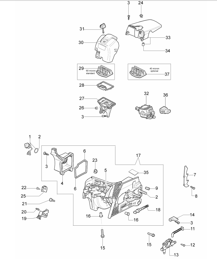 Hier finden Sie alle Ersatzteile für Oleo-Mac Motorsäge 941 CX aus der Zeichnung für Motorgehäuse: