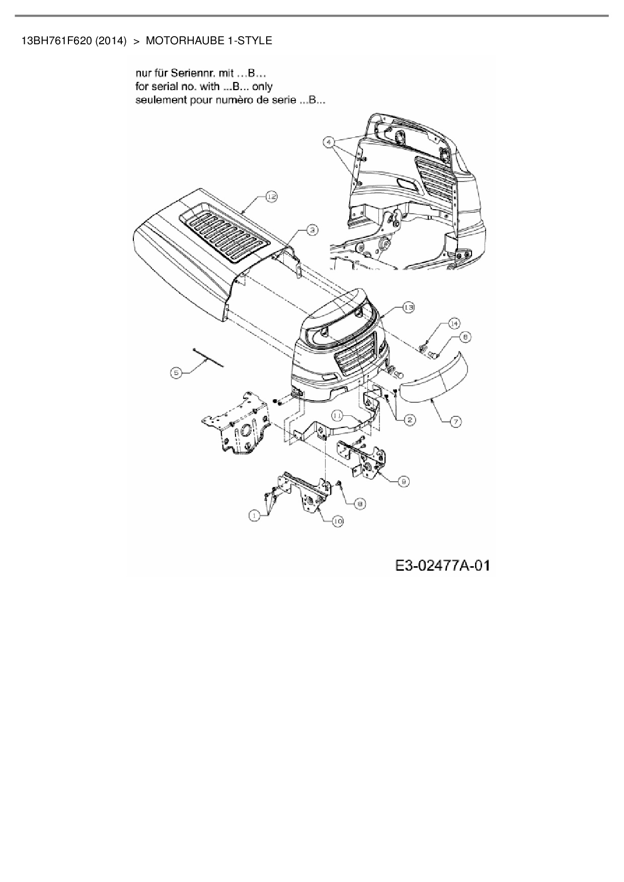 Zeichnung für CMI Rasentraktor 96-125 mit der Geräte-Artikelnr. 13BH761F620 ab Baujahr 2014: