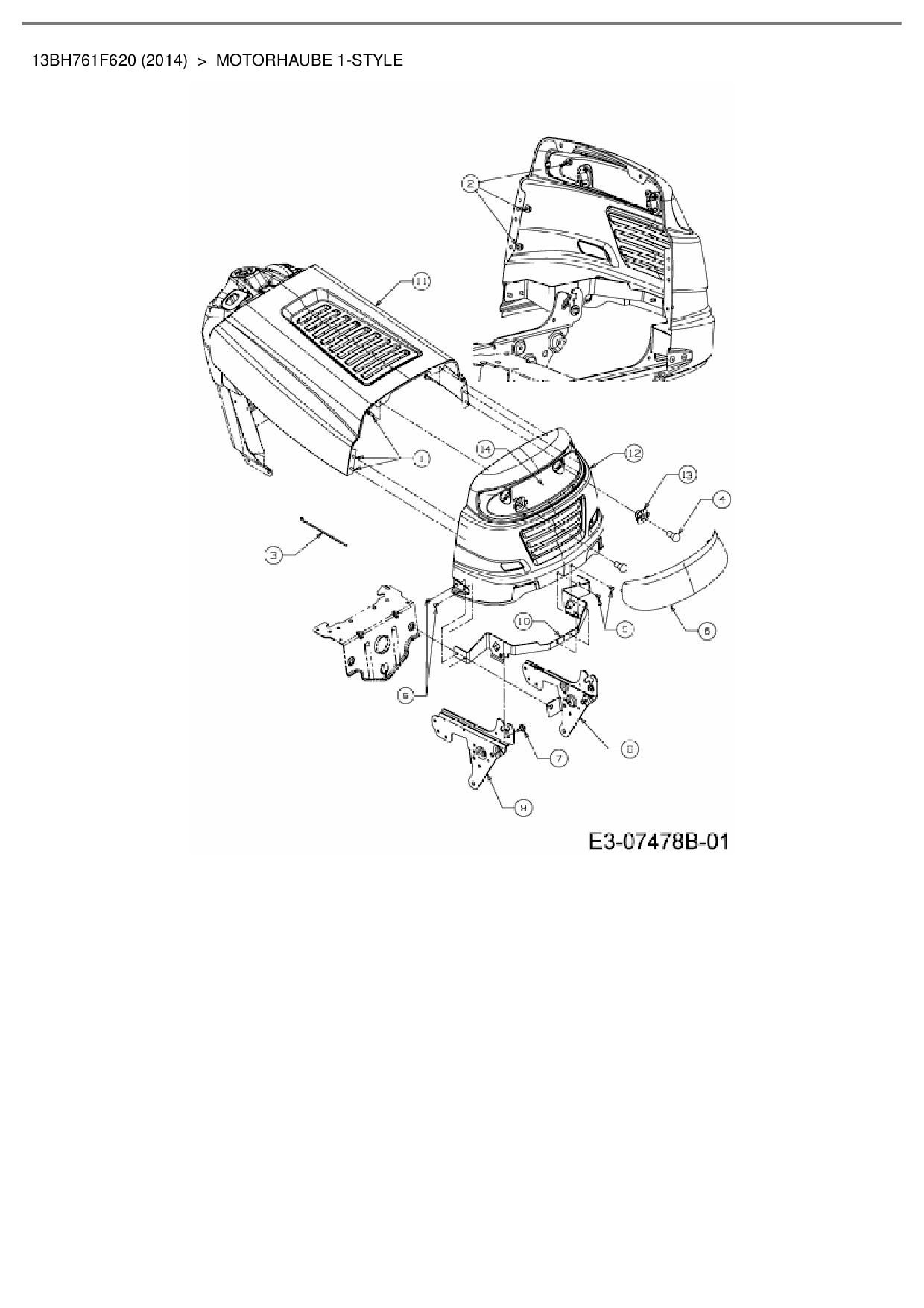 Ersatzteile für Rasentraktor CMI 96-125 aus der Zeichnung Motorhaube 1-Style 2: