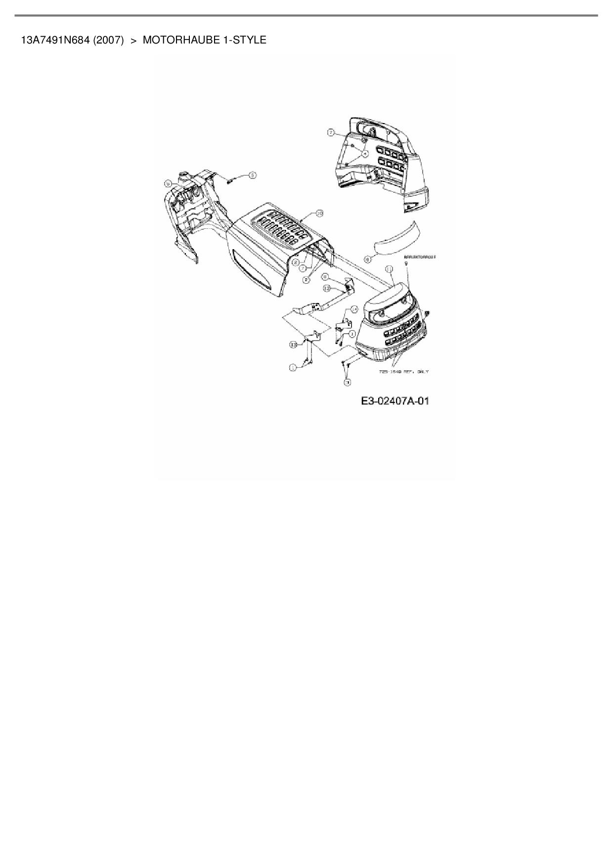Ersatzteile für Rasentraktor Bolens BL 200/105 H aus der Zeichnung Motorhaube 1-Style: