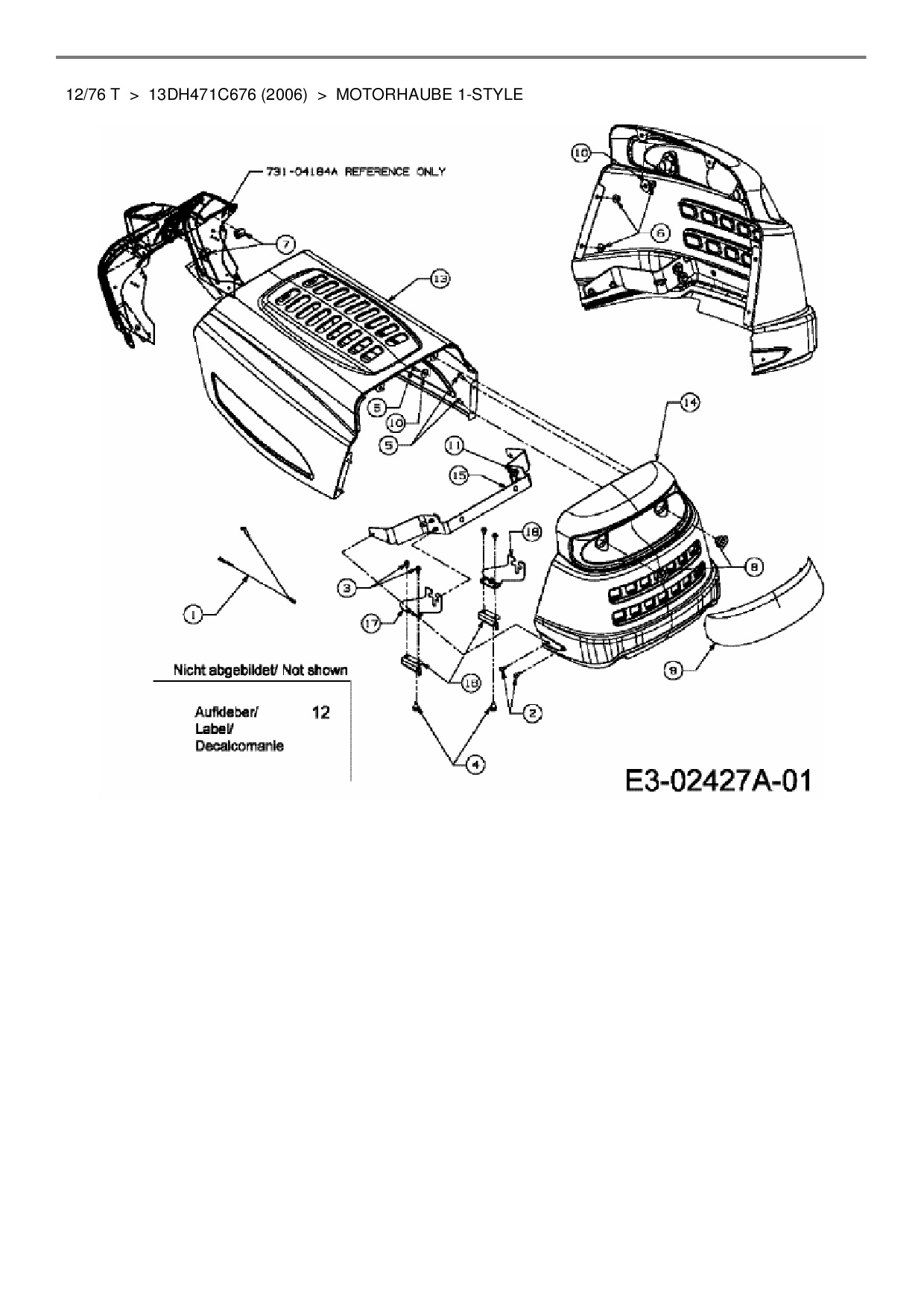 Ersatzteile für Rasentraktor MTD 12/76 T aus der Zeichnung Motorhaube 1-Style:
