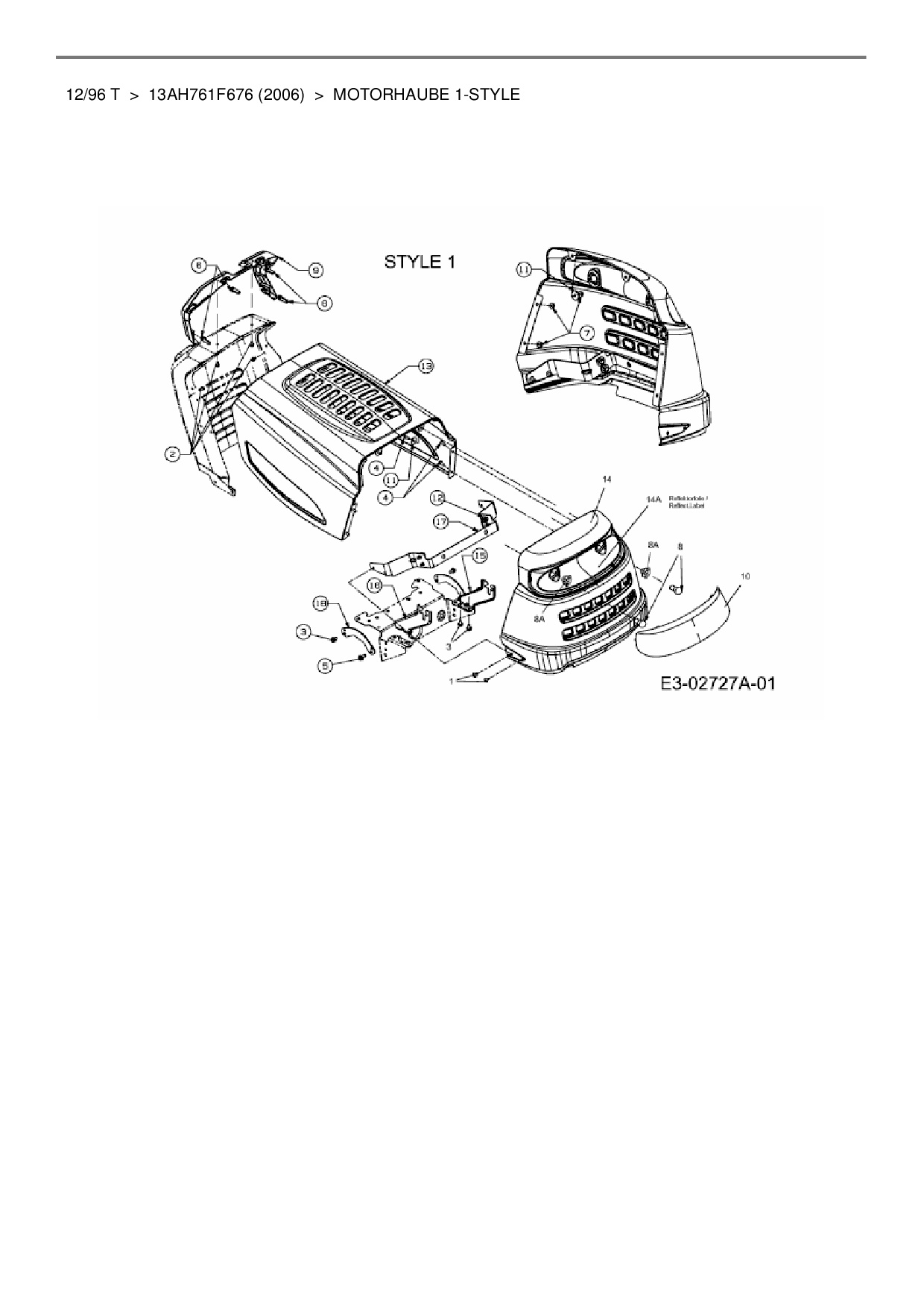 Ersatzteile für Rasentraktor MTD 12/96 T aus der Zeichnung Motorhaube 1-Style: