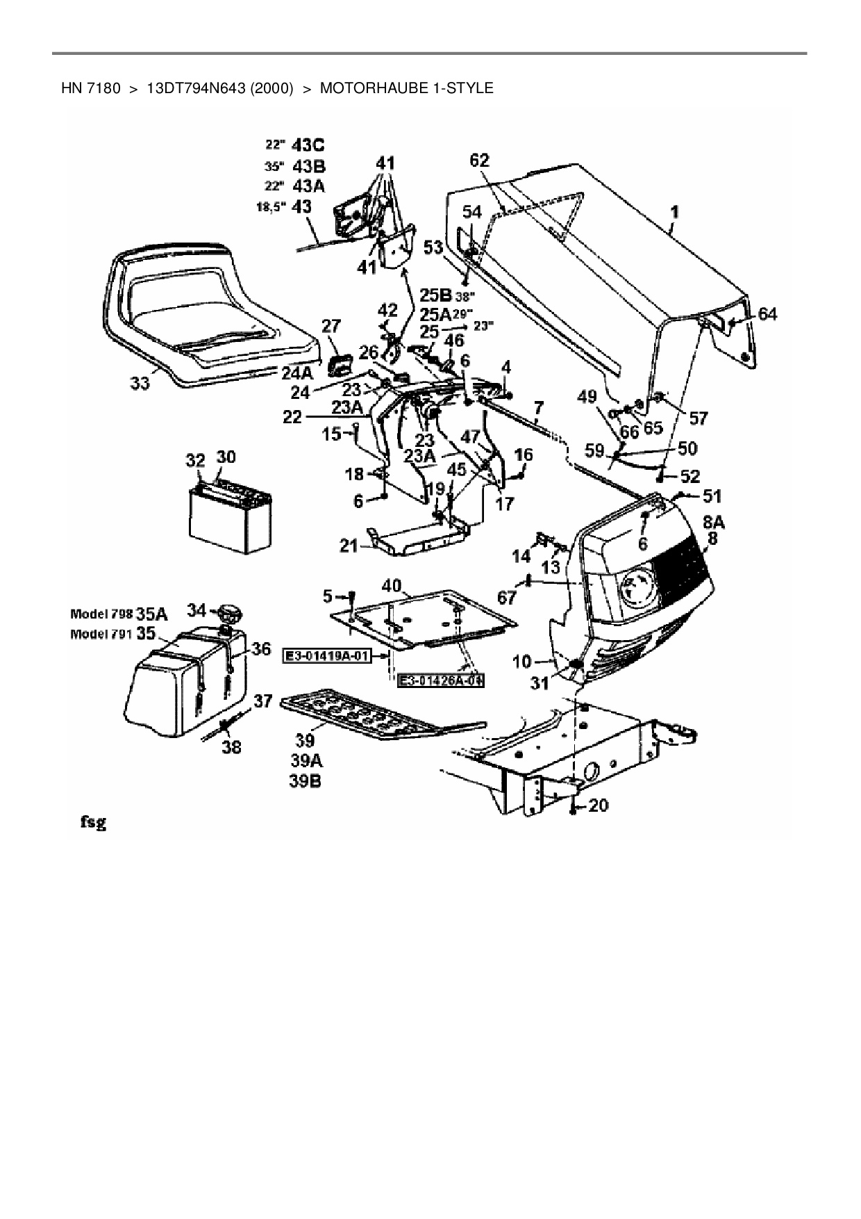 Ersatzteile für Rasentraktor Yard-Man HN 7180 aus der Zeichnung Motorhaube 1-Style: