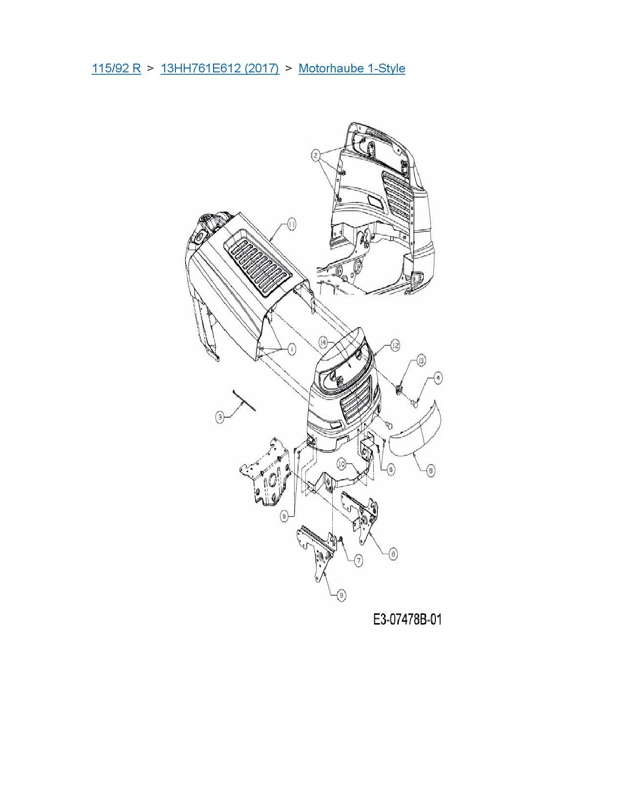 Ersatzteile für Rasentraktor MTD 115/92 R aus der Zeichnung Motorhaube 1-Style: