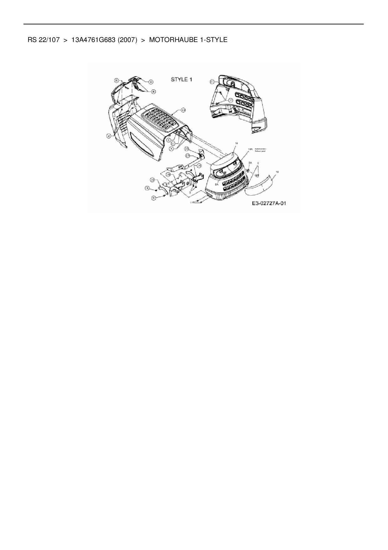 Ersatzteile für Rasentraktor Black-Line RS 22/107 aus der Zeichnung Motorhaube 1-Style: