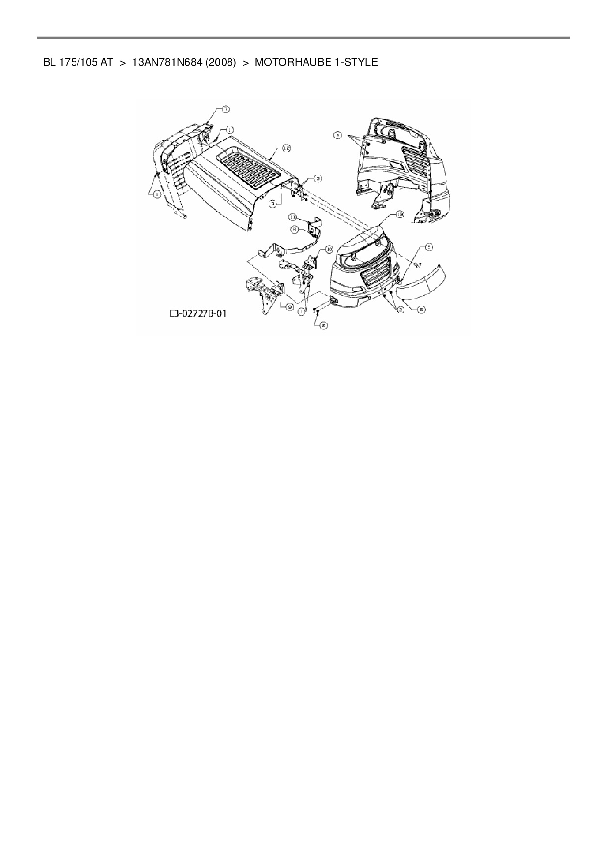 Ersatzteile für Rasentraktor Bolens BL 175/105 AT aus der Zeichnung Motorhaube 1-Style: