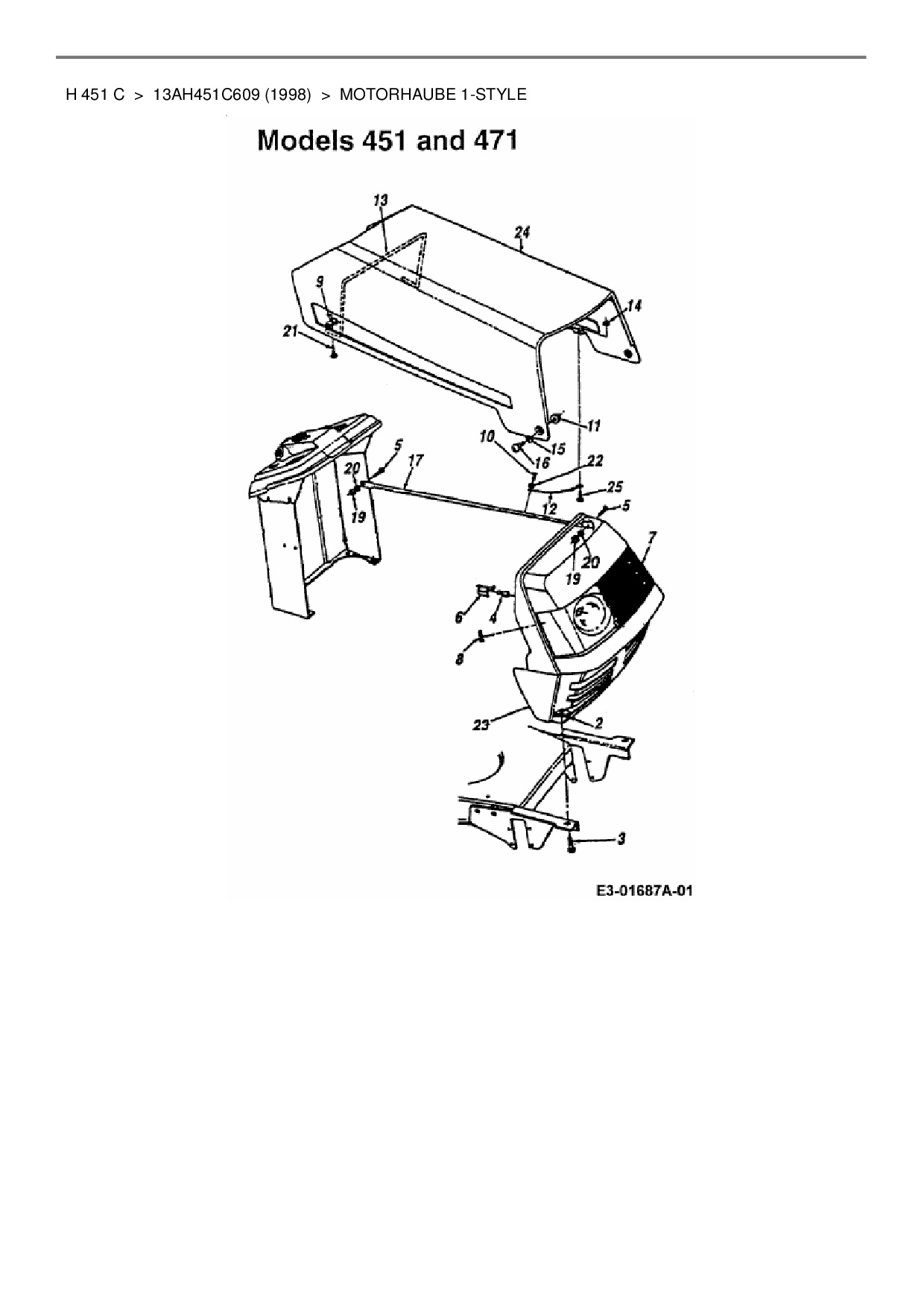 Ersatzteile für Rasentraktor HVC H 451 C aus der Zeichnung Motorhaube 1-Style: