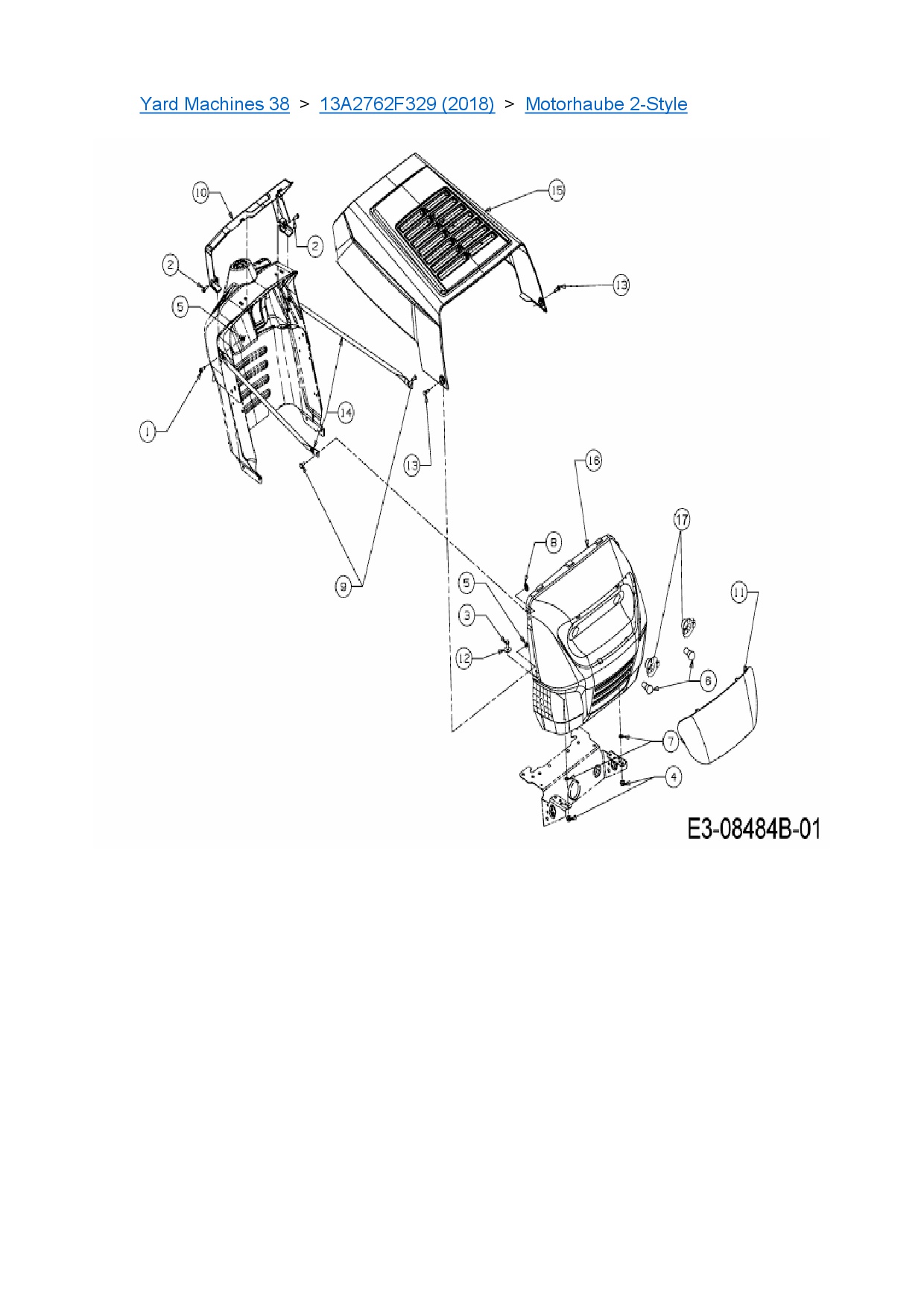 Download Ersatzteil-Zeichnung MTD Yard Machines 38 Zeichnung Motorhaube 2-Style (PDF-Format)