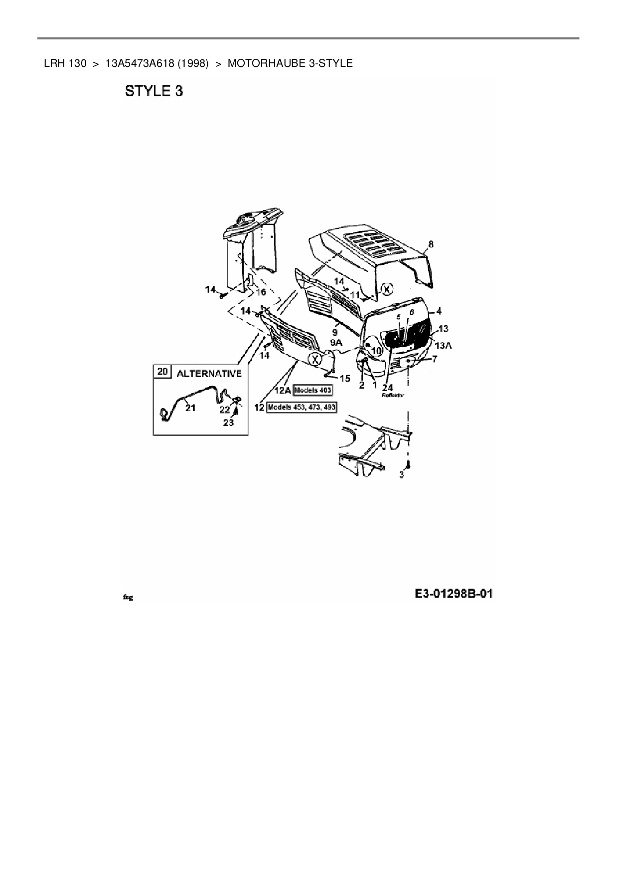 Ersatzteile für Rasentraktor Juwel LRH 130 aus der Zeichnung Motorhaube 3-Style: