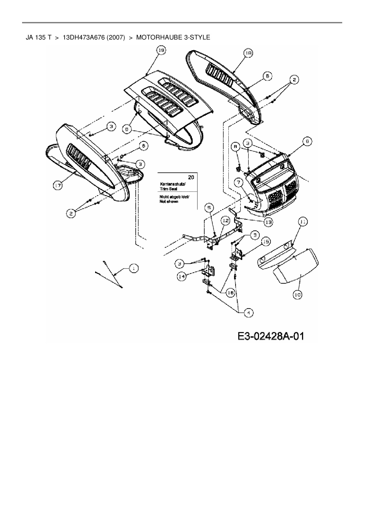 Download Ersatzteil-Zeichnung MTD JA 135 T Zeichnung Motorhaube 3-Style (PDF-Format)