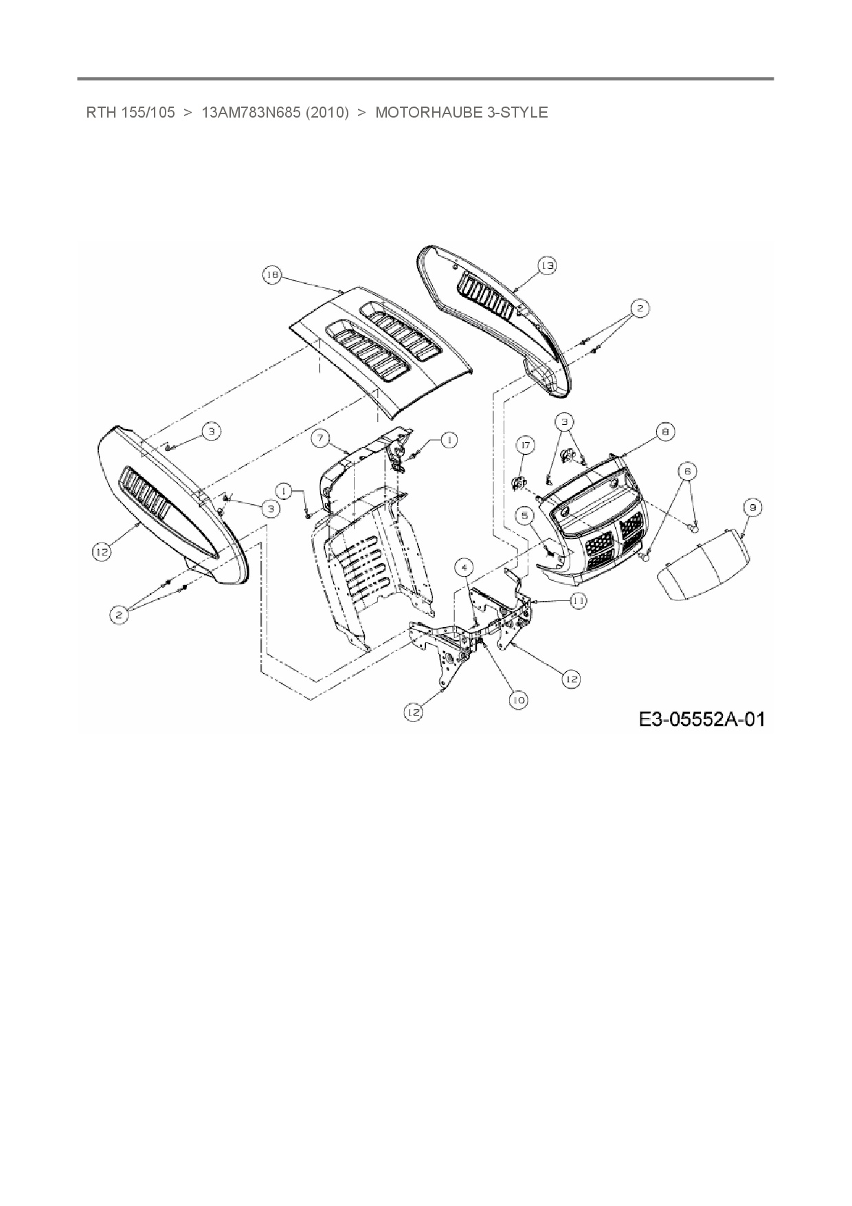 Ersatzteile für Rasentraktor Sunline RTH 155/105 aus der Zeichnung Motorhaube 3-Style: