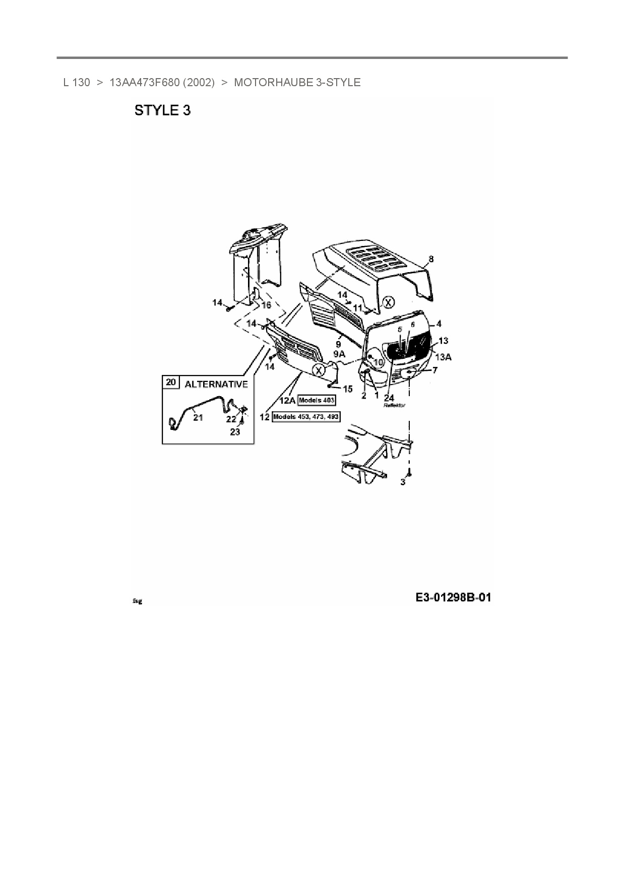 Ersatzteile für Rasentraktor White L 130 aus der Zeichnung Motorhaube 3-Style: