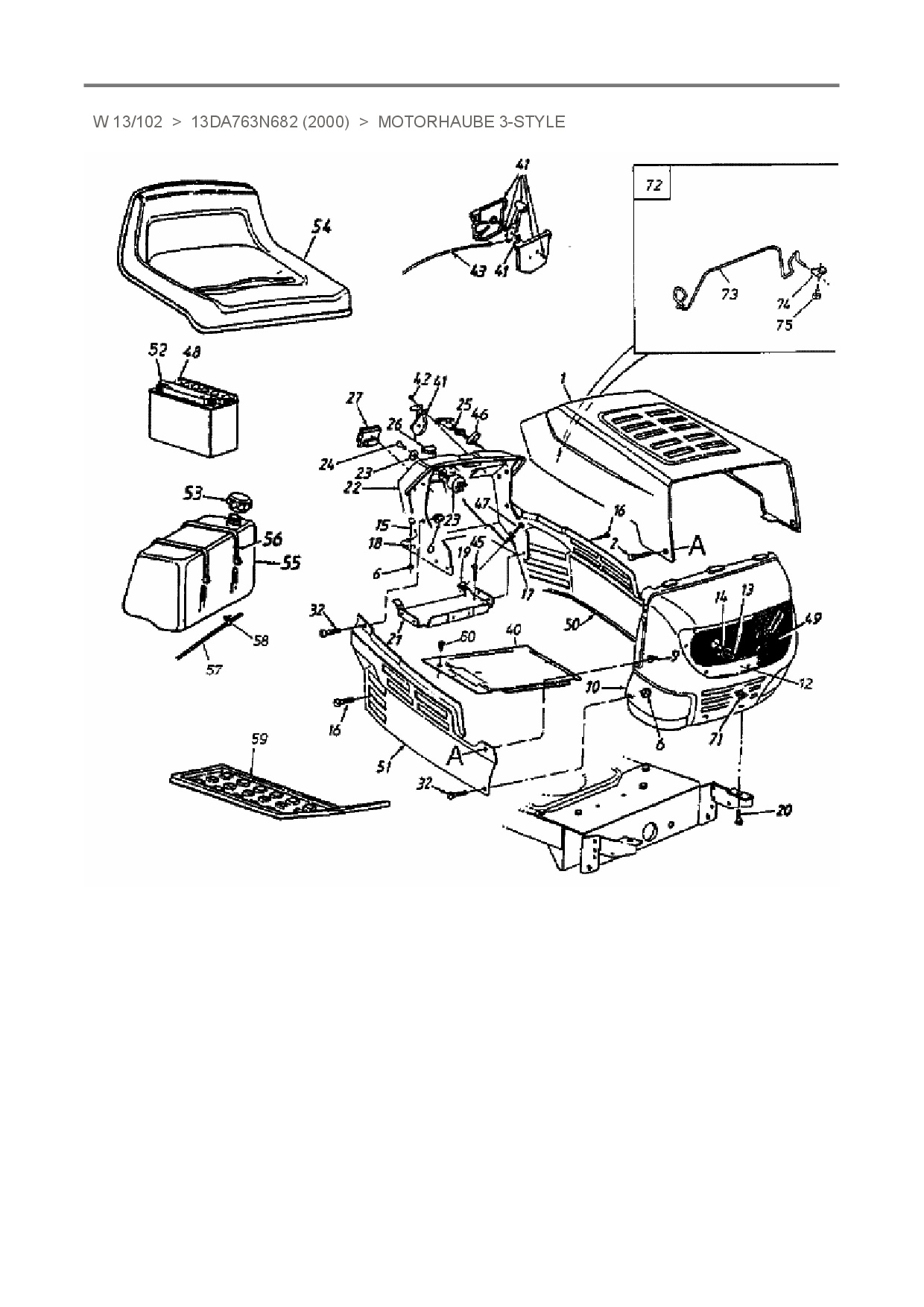 Ersatzteile für Rasentraktor White W 13/102 aus der Zeichnung Motorhaube 3-Style: