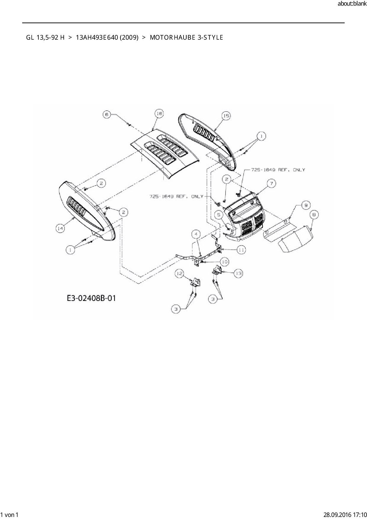 Ersatzteile für Rasentraktor Gartenland GL 13,5-92 H aus der Zeichnung Motorhaube 3-Style: