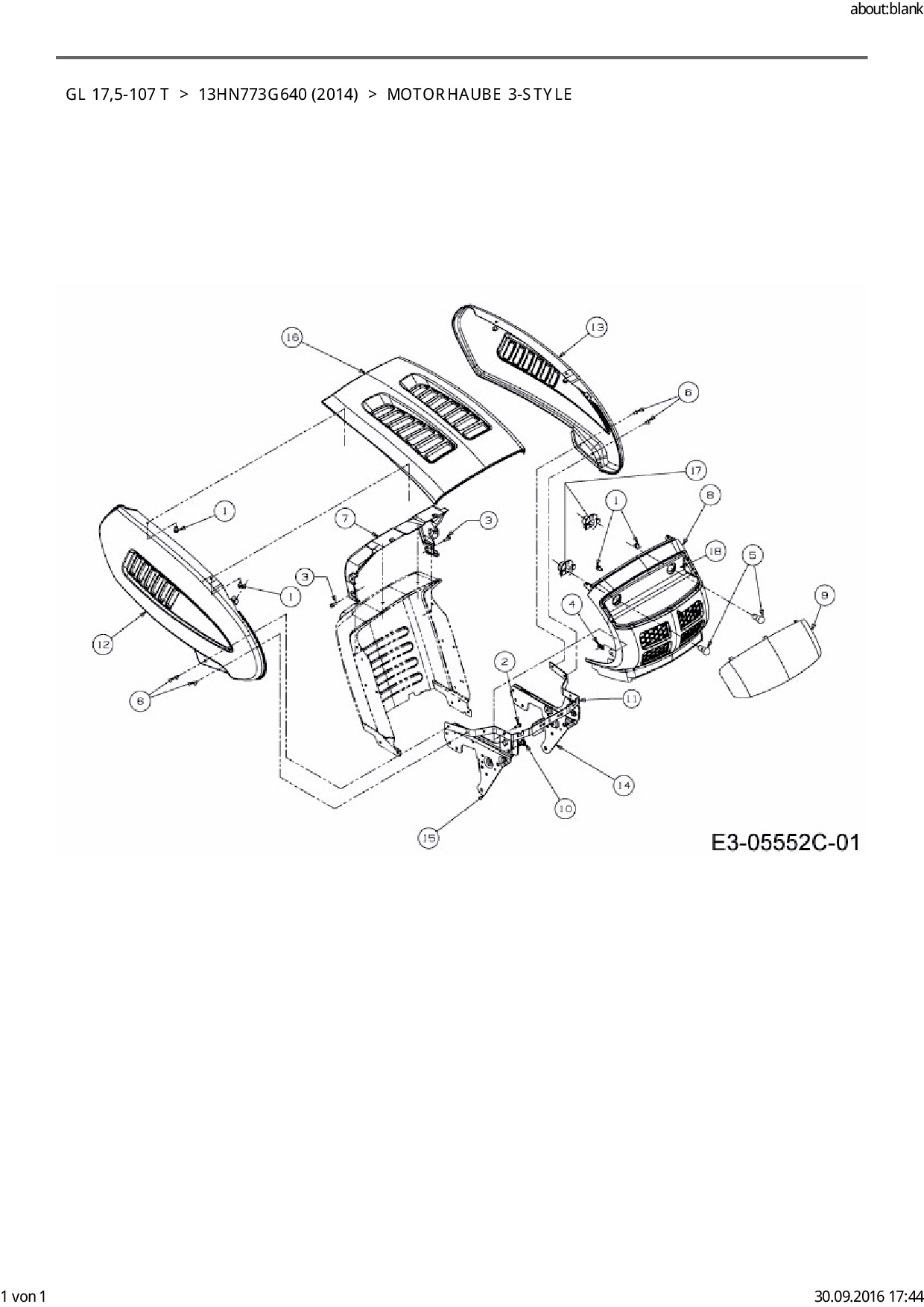 Ersatzteile für Rasentraktor Gartenland GL 17,5-107 T aus der Zeichnung Motorhaube 3-Style: