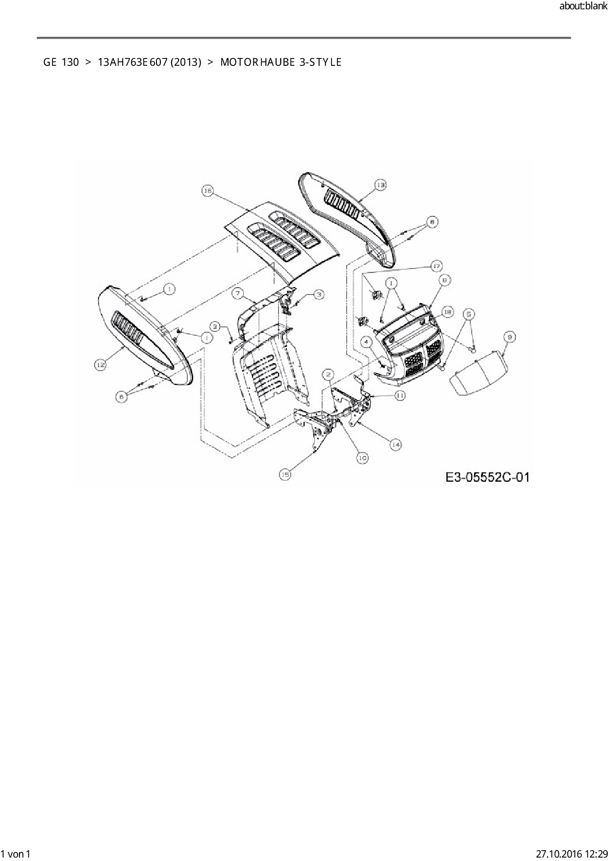 Ersatzteile für Rasentraktor Blisar GE 130 aus der Zeichnung Motorhaube 3-Style: