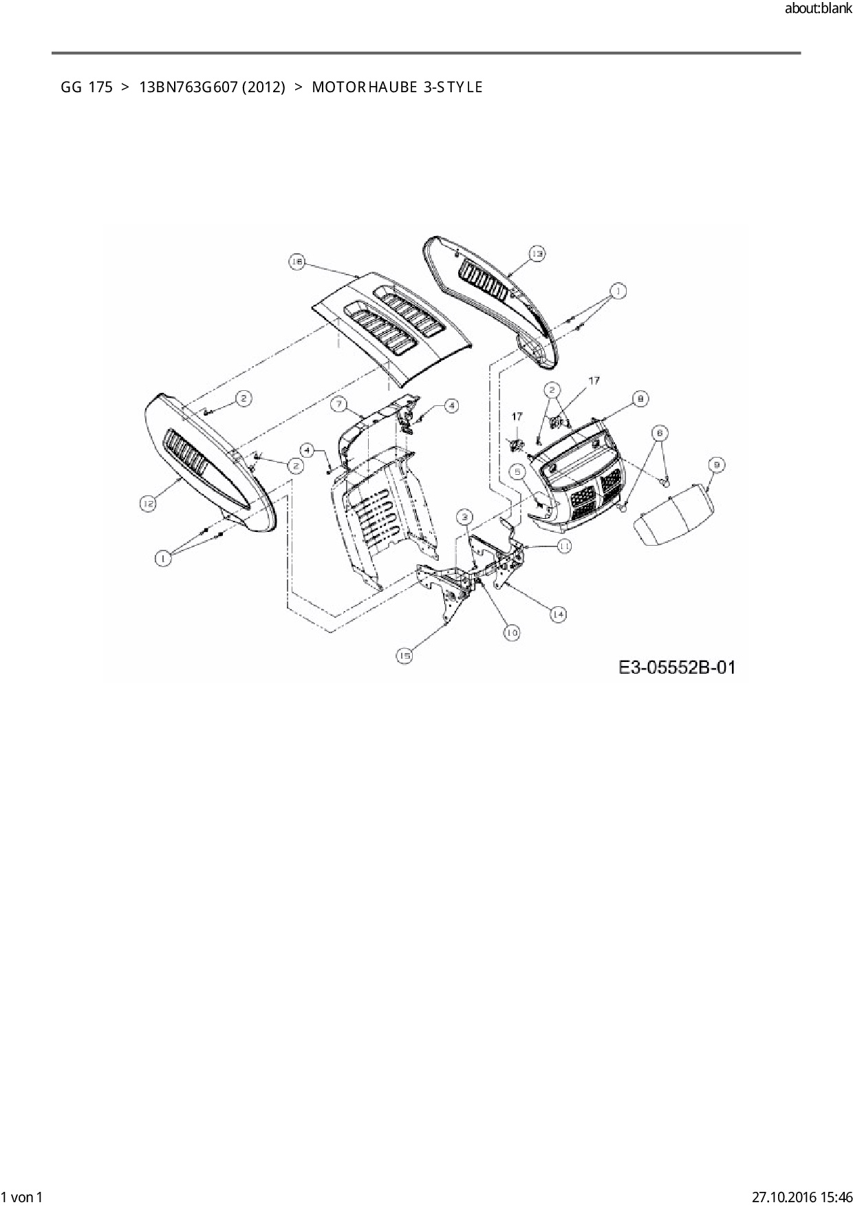 Ersatzteile für Rasentraktor Blisar GG 175 aus der Zeichnung Motorhaube 3-Style: