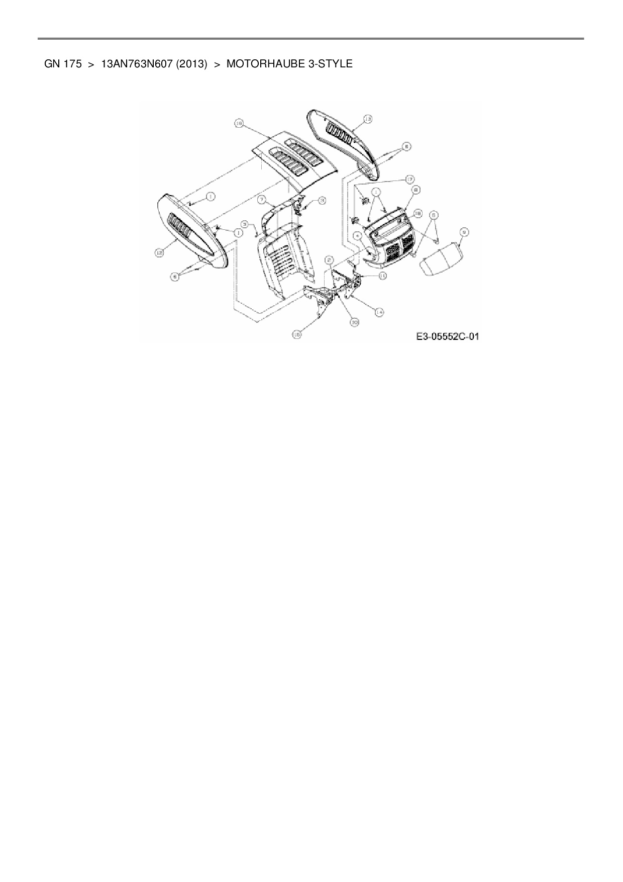 Ersatzteile für Rasentraktor Blisar GN 175 aus der Zeichnung Motorhaube 3-Style: