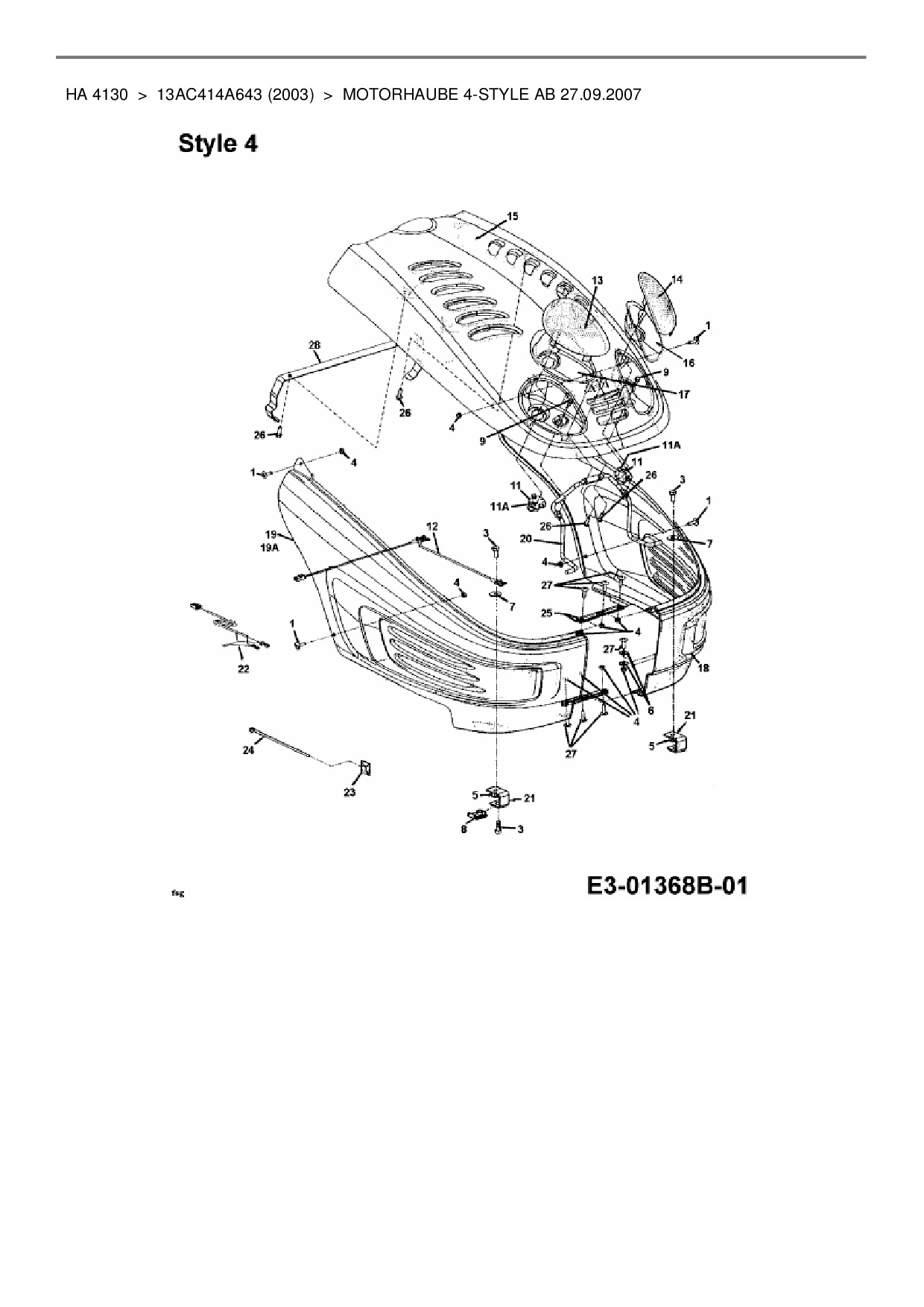 Ersatzteile für Rasentraktor Yard-Man HA 4130 aus der Zeichnung Motorhaube 4-Style ab 27.09.2007: